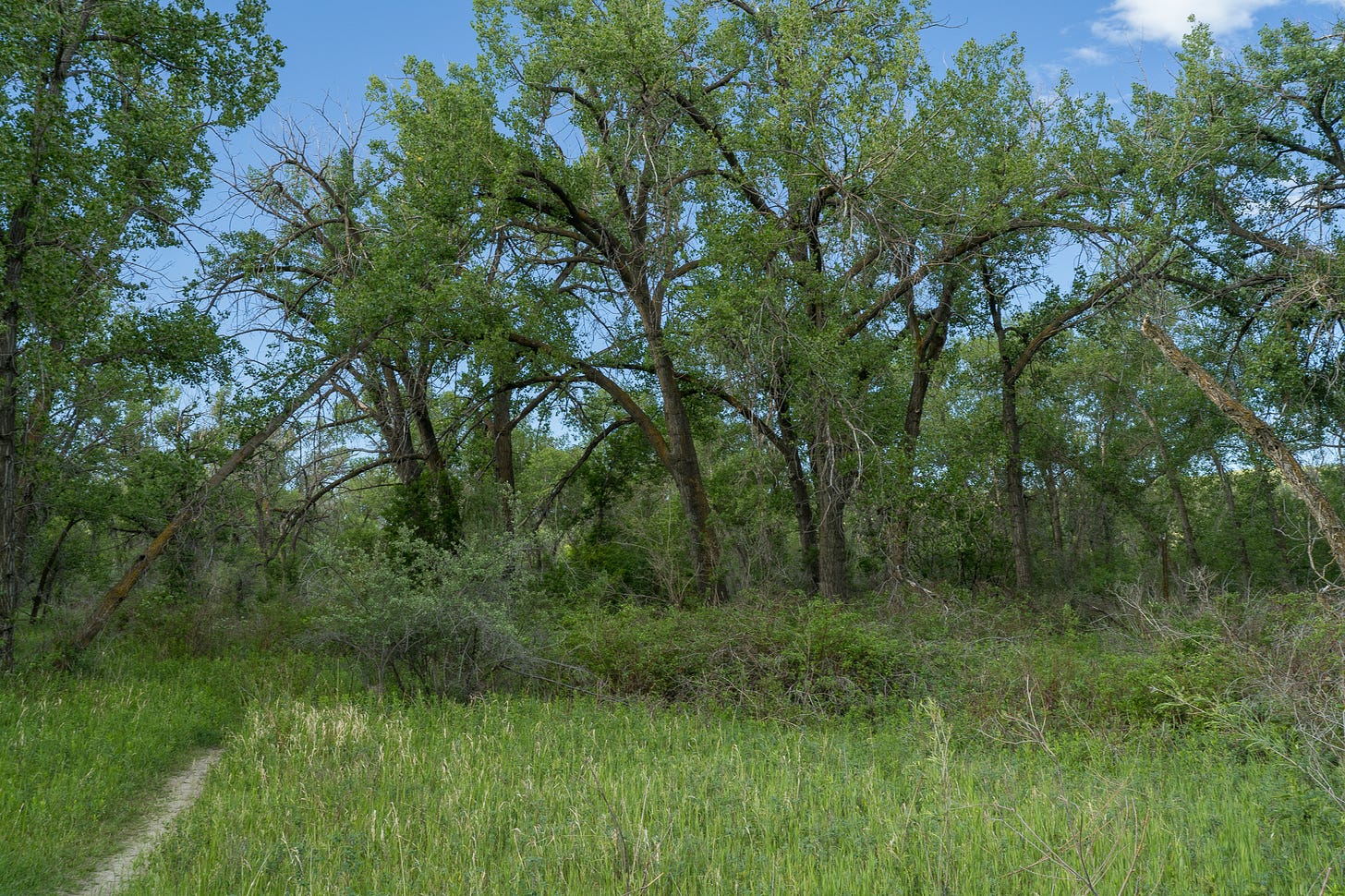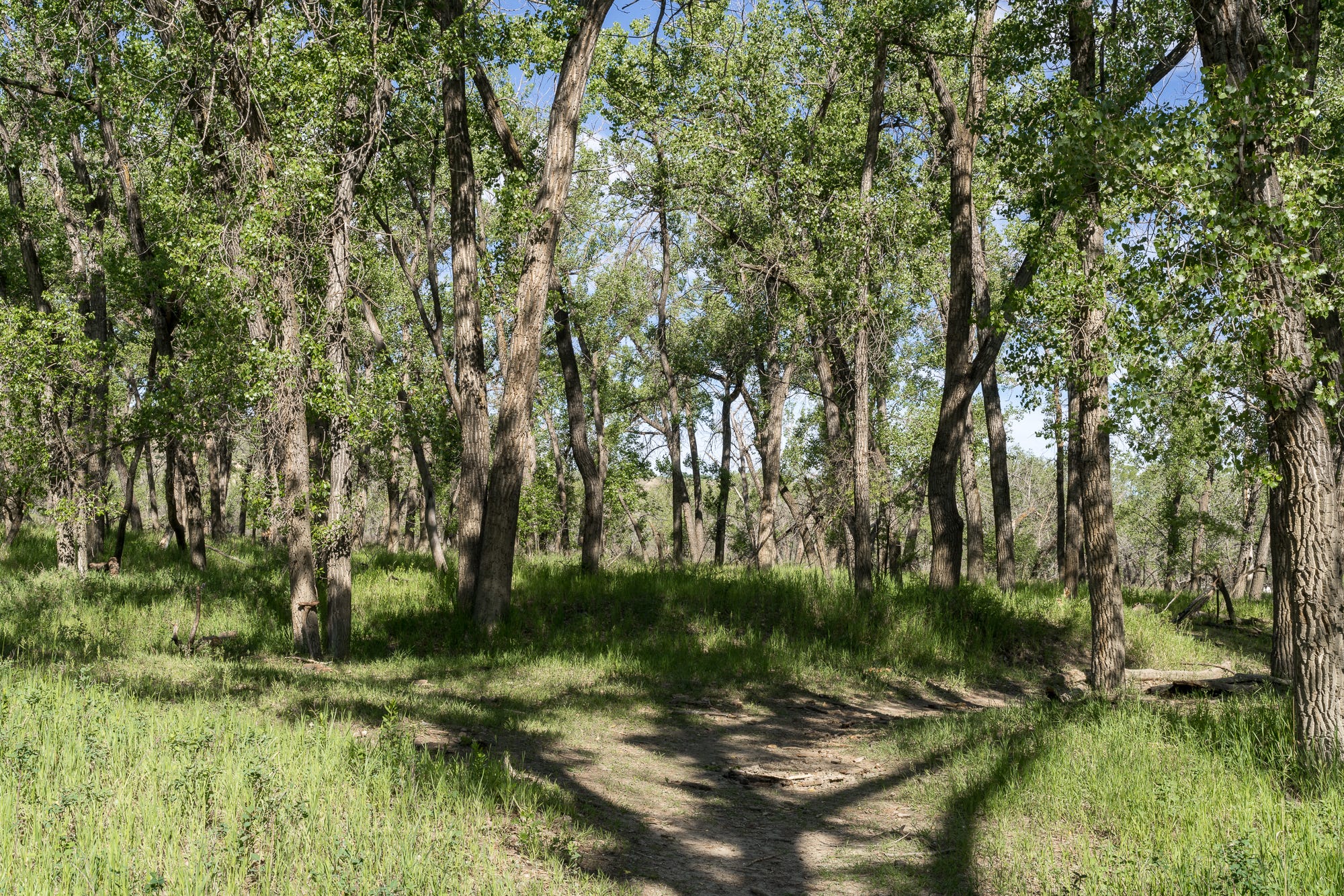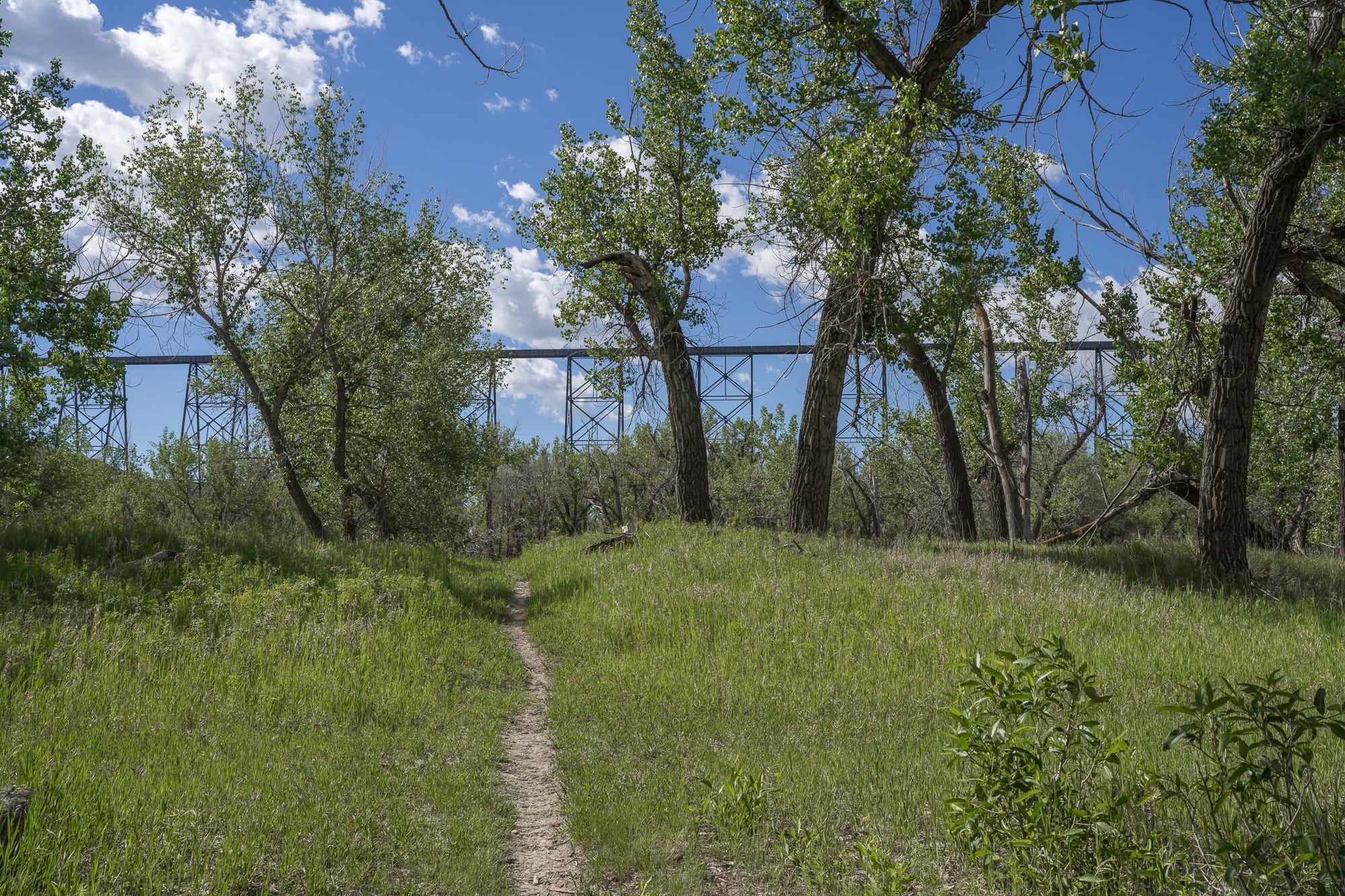 My photos of cottonwoods were taken in a small valley, home of Indian Battle Ground Park, in Lethbridge, Alberta. Most people with a camera go there to photograph High-Level Bridge / Lethbridge Viaduct, the longest & highest trestle bridge in the world. In some of my photos you may see it here and there, far up in the sky from the valley floor, just visible through the branches and summer leaves of the cottonwoods.