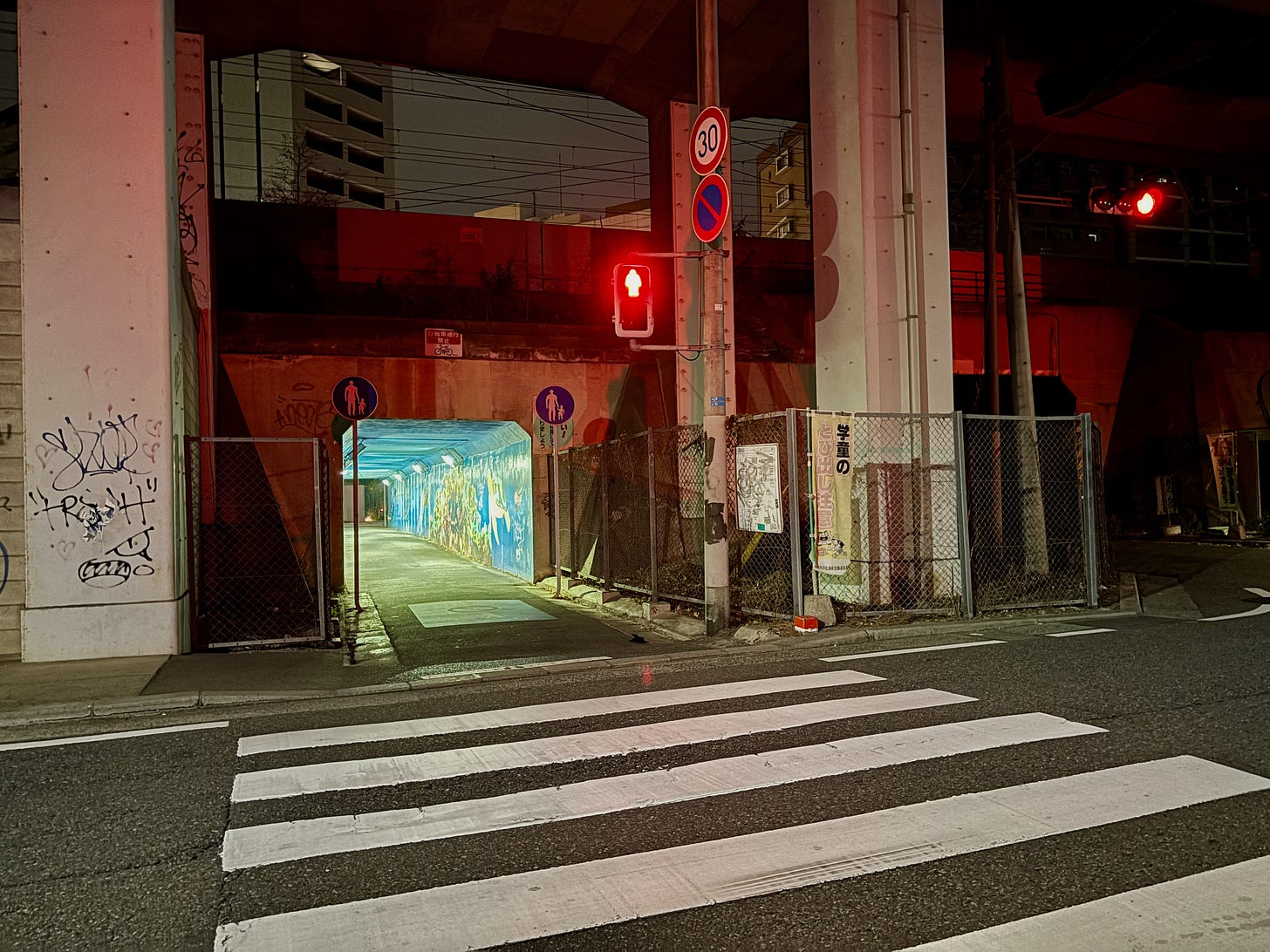 This emptiness is not abandonment. Nothing has failed. The city is functioning exactly as it should. We know who is missing, and we know they will be back. Someone will park here again tomorrow. Someone will walk through this underpass. The vending machines will be used. The stairwell will fill and empty, over and over.