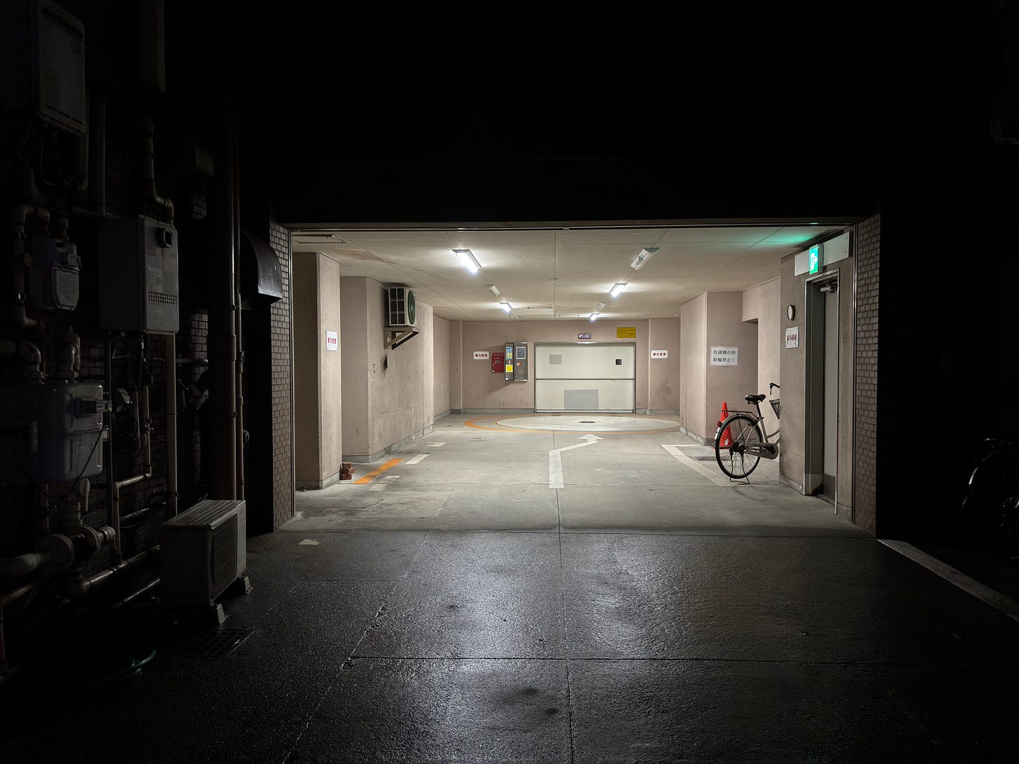 In the end, these photographs aren’t really about solitude. They’re more basic than that. They’re about what we see when no one is there. An empty room. A bike left by a door. A lit parking garage waiting for the morning.
